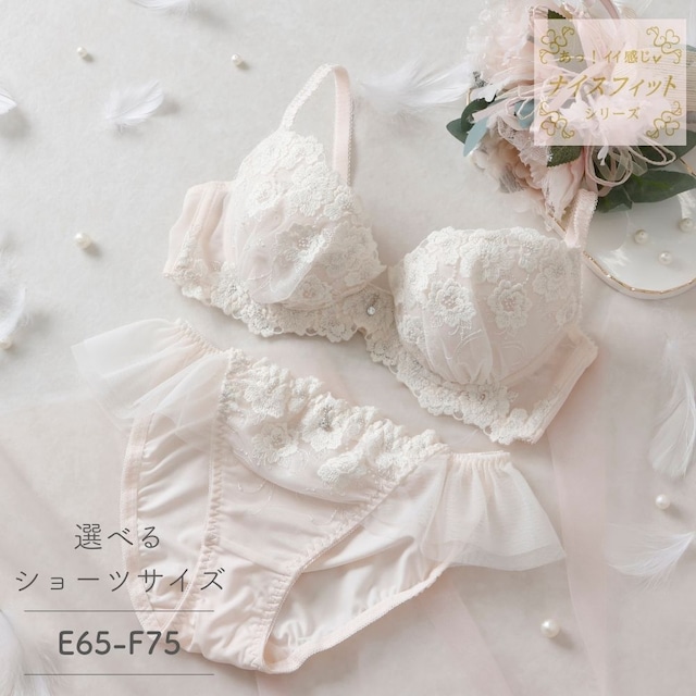 ショーツサイズが選べる【E・F】ブーケアップリケ ブラ&ショーツセット