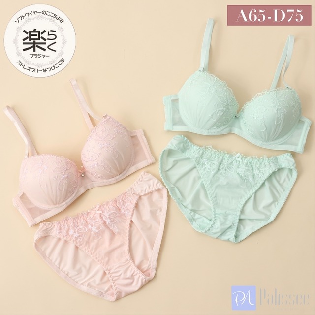 ウーリー糸を使用したふんわり花柄刺繍がとっても清楚で可愛い雰囲気!パステルカラーのリフトアップ風サイドチュールの仕様が人気のブラとショーツの下着セットです。 ◆サイズ A70【M】,A75【M】 B65【M】,B70【M】,B75【M】 C65【M】,C70【M】,C75【M】 D65【M】,D70【M】,D75【L】 E65【M】,E70【M】,E75【L】 F65【M】,F70【M】,F75【L】 【 】内にショーツサイズを記載しております。 Mサイズ(ヒップ87~95cm) Lサイズ(ヒップ92~100cm) ◆マネキン着用サイズ ブラC70 ◆素材 ブラ ポリエステル,ポリウレタン,その他 ショーツ ポリエステル,ナイロン,その他 ◆裏地 T/C天竺 ◆透け感 無し ◆生地の厚さ 薄手 ◆カップ形状 3/4カップ,ナイスフィットパターン ◆その他仕様 ◇ワイヤー入り ◇ホック2段3列 ◇前後ストラップ取り外し不可 ◇パッドあり(取り外し可能なレモンパッド) ◆企画:日本 / 生産:中国