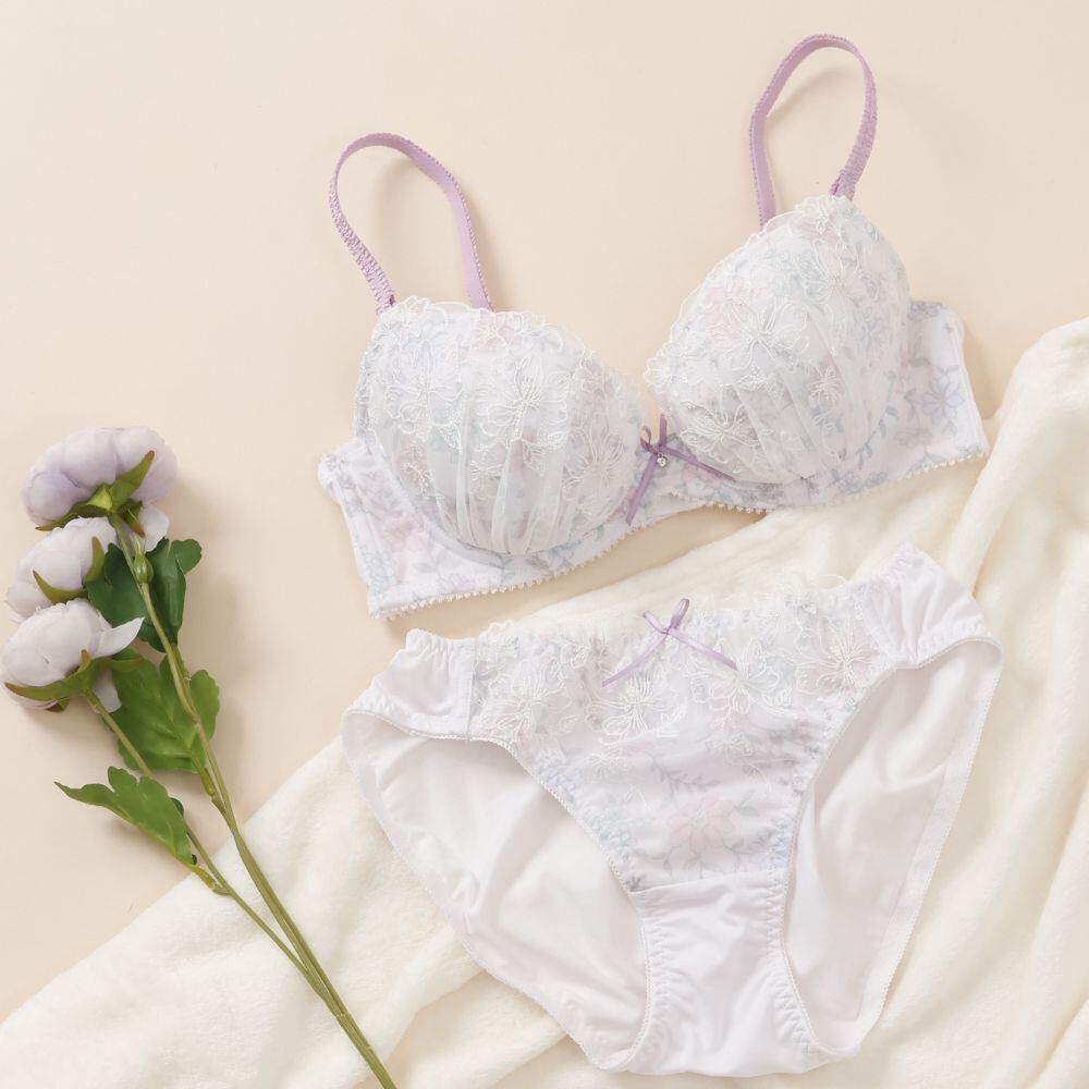 【E・Fカップ】ペールフローラル ブラ&ショーツ