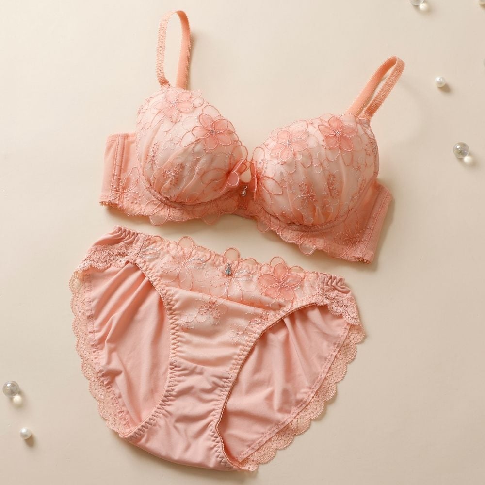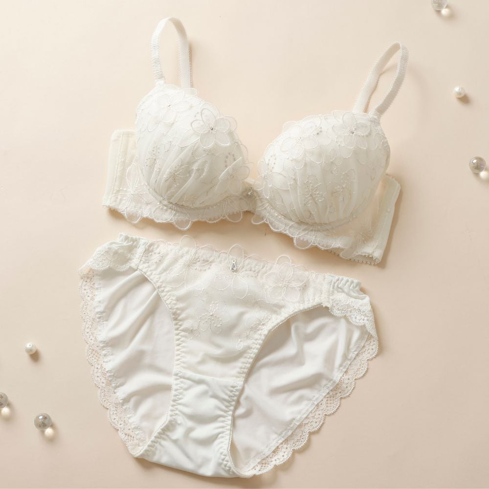 選べるショーツサイズ【B〜D】ブーケアップリケ ブラ&ショーツ