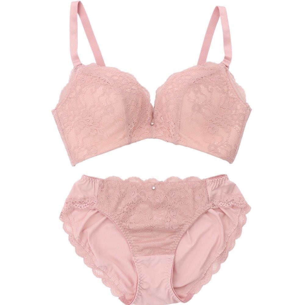 レースプッシュアップ ブラジャー&ショーツセット【ピンク】