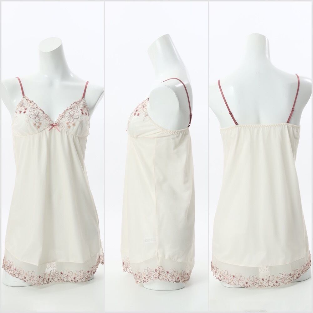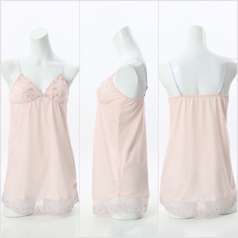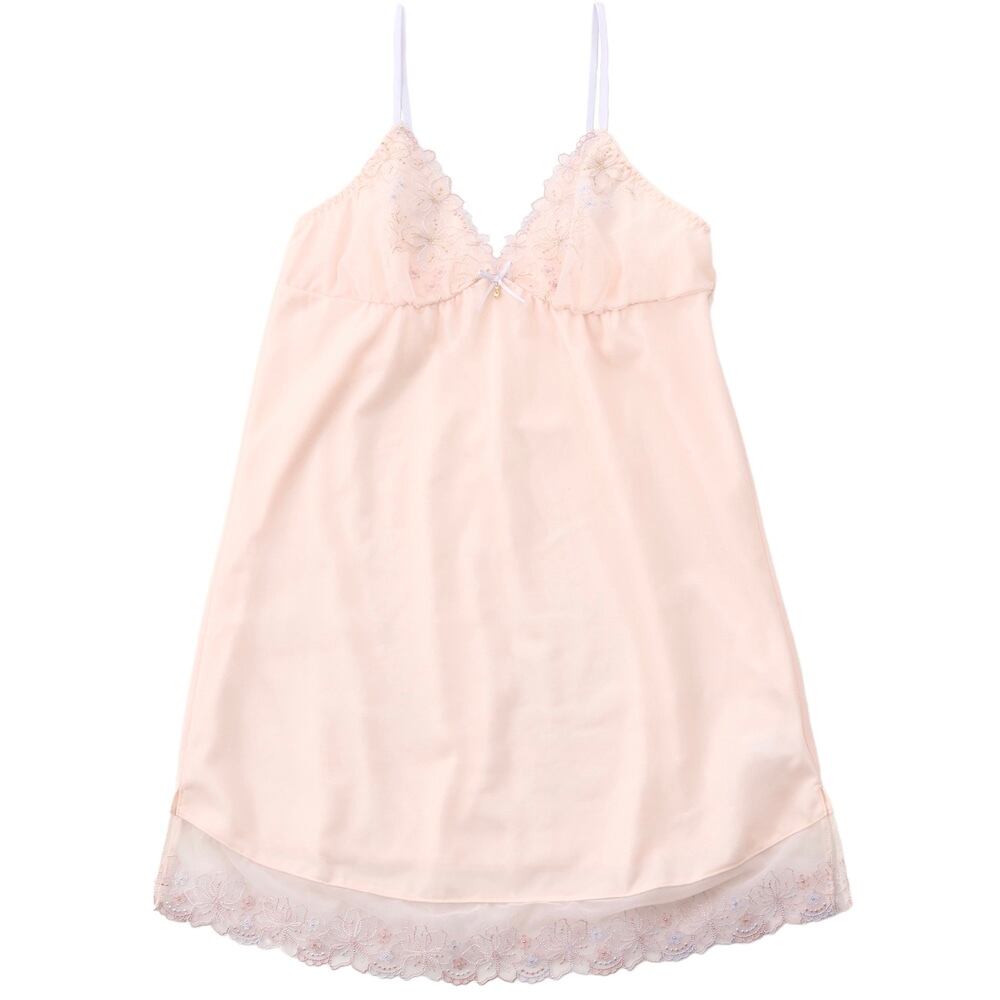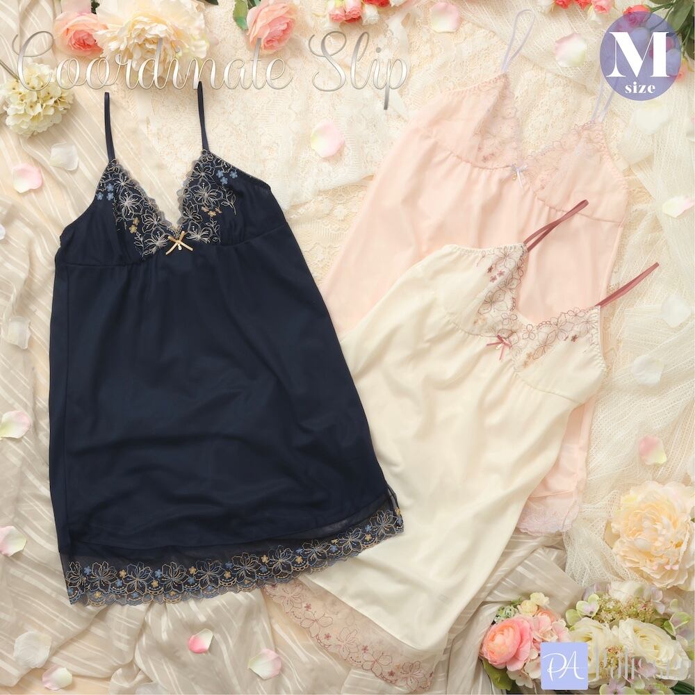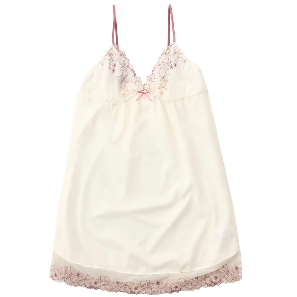 ラメ糸をほどこした線画の花柄刺繍レースがフェミニンなスリップです。