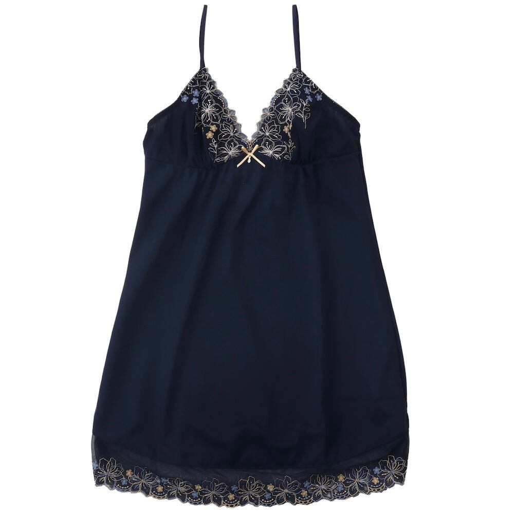 【ラスト2点★ネイビー】Line Art Flower スリップ