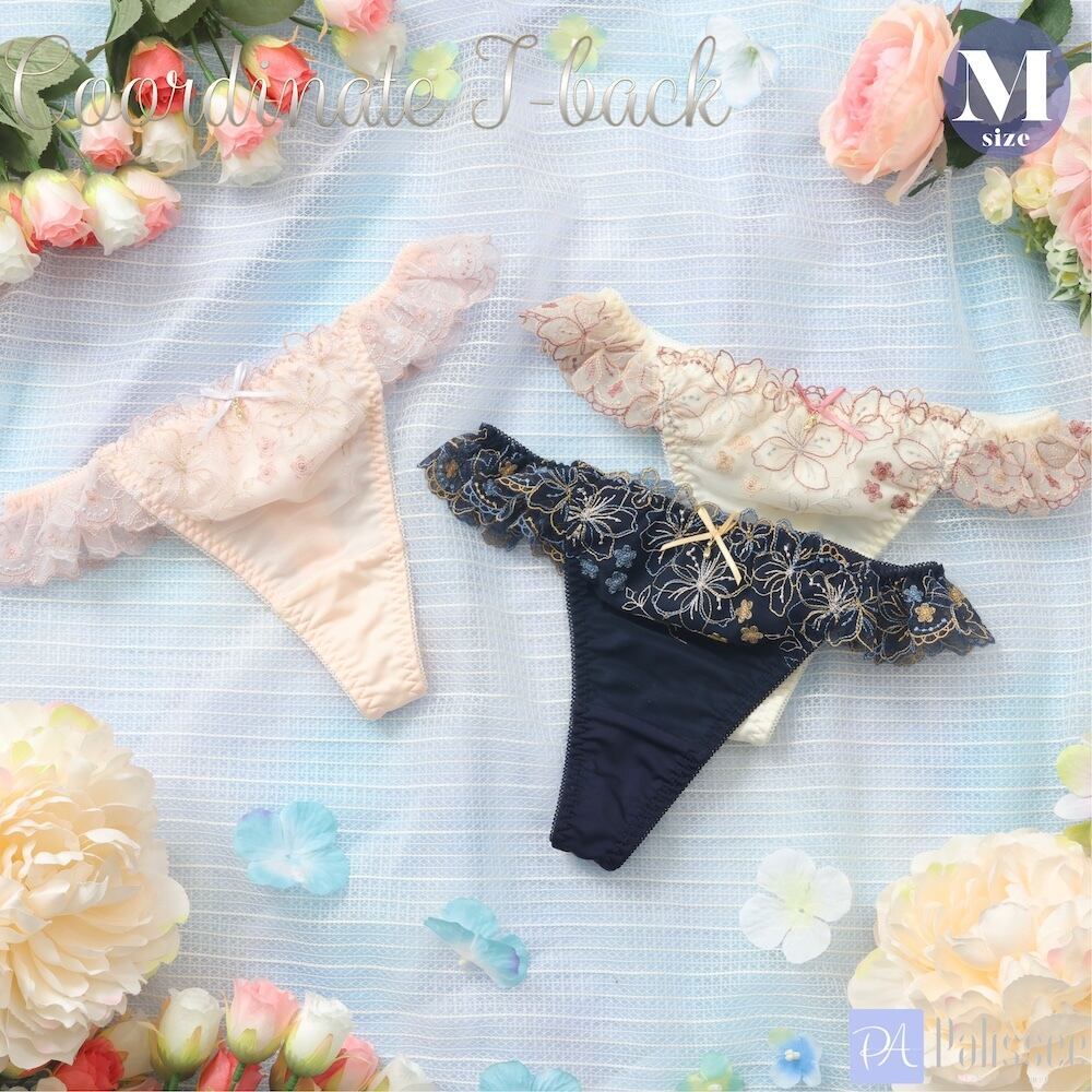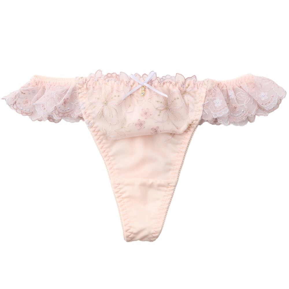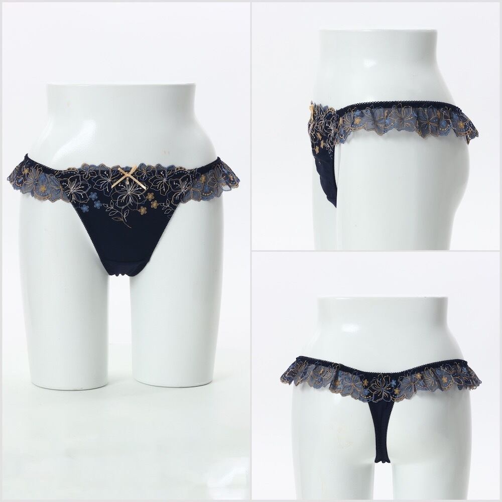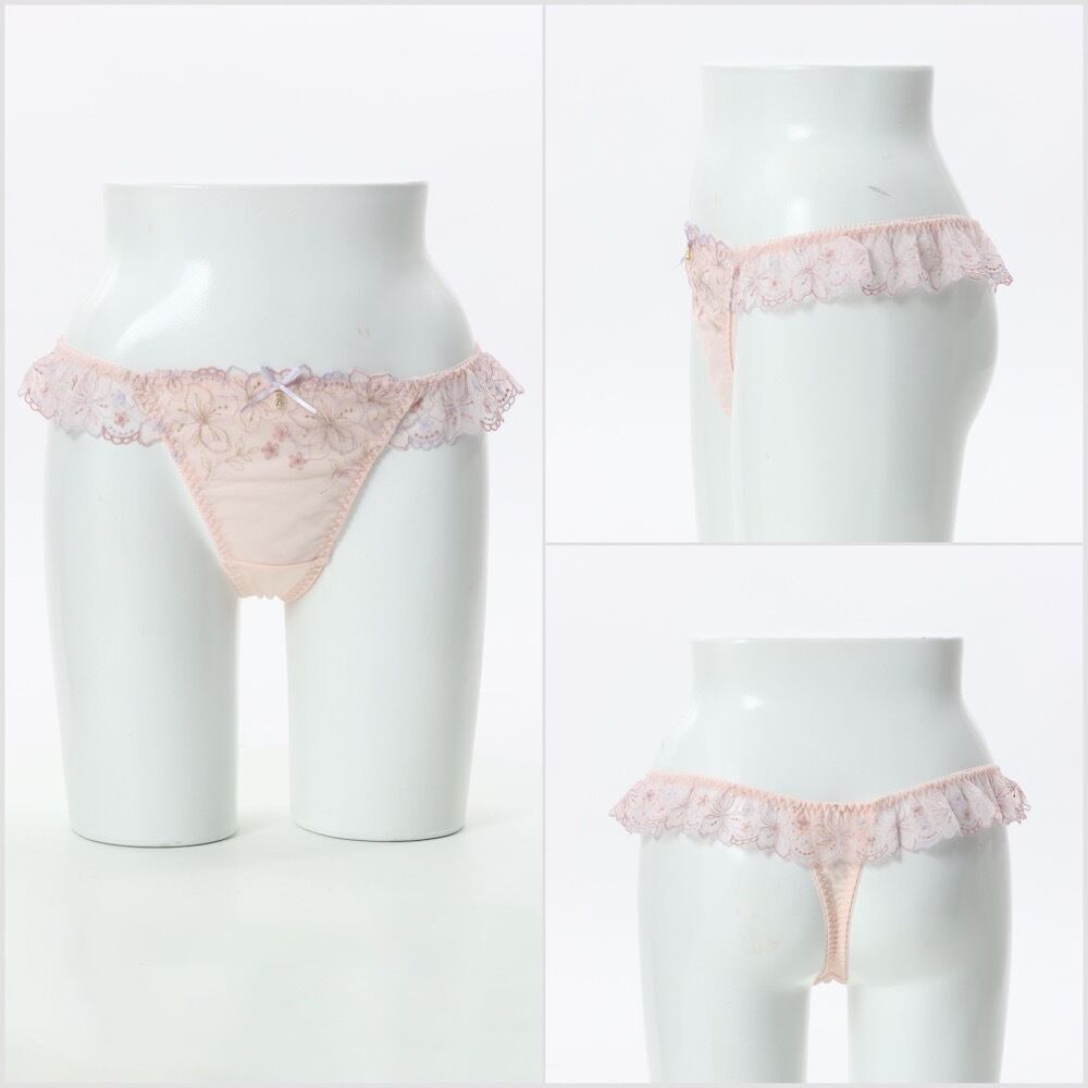 ラメ糸をほどこした線画の花柄刺繍レースがフェミニンなTバックショーツです。