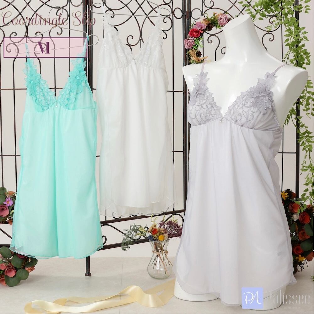 豪華なレースと透明感のあるカラーで華やかな雰囲気のスリップ