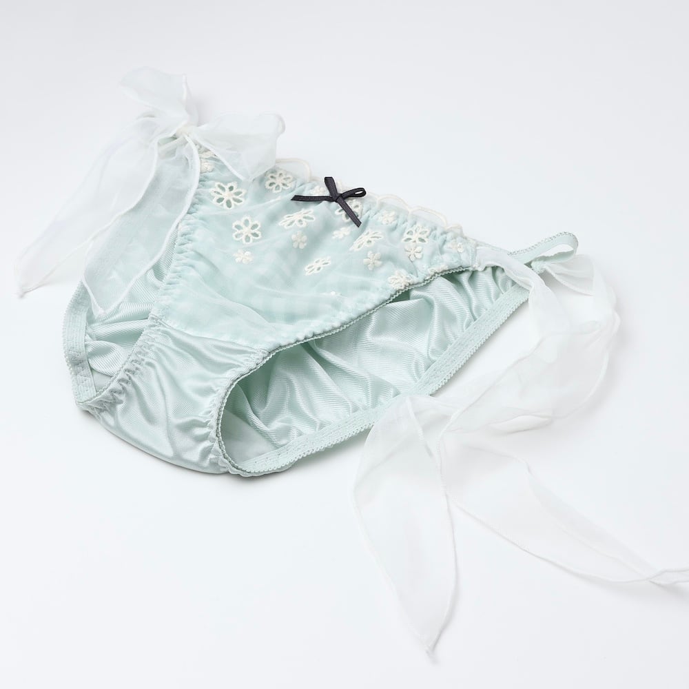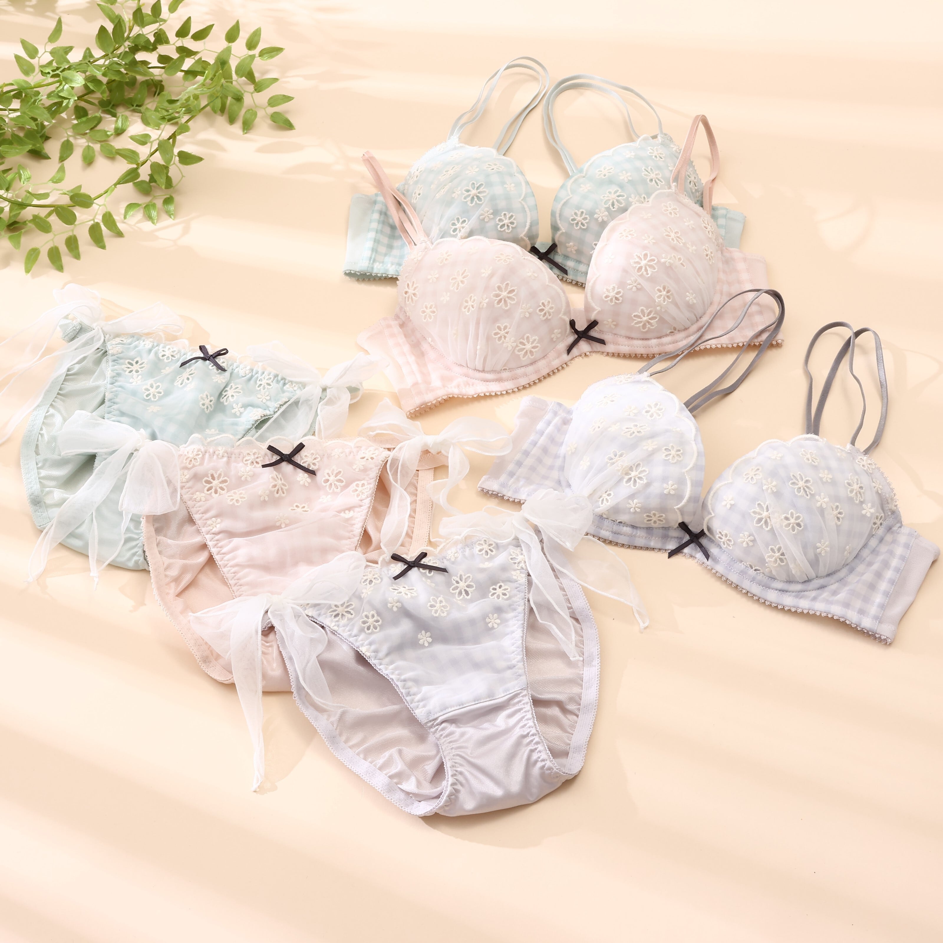 脇高 L字ワイヤー ギンガムチェックフラワー 3/4カップブラ&ショーツ