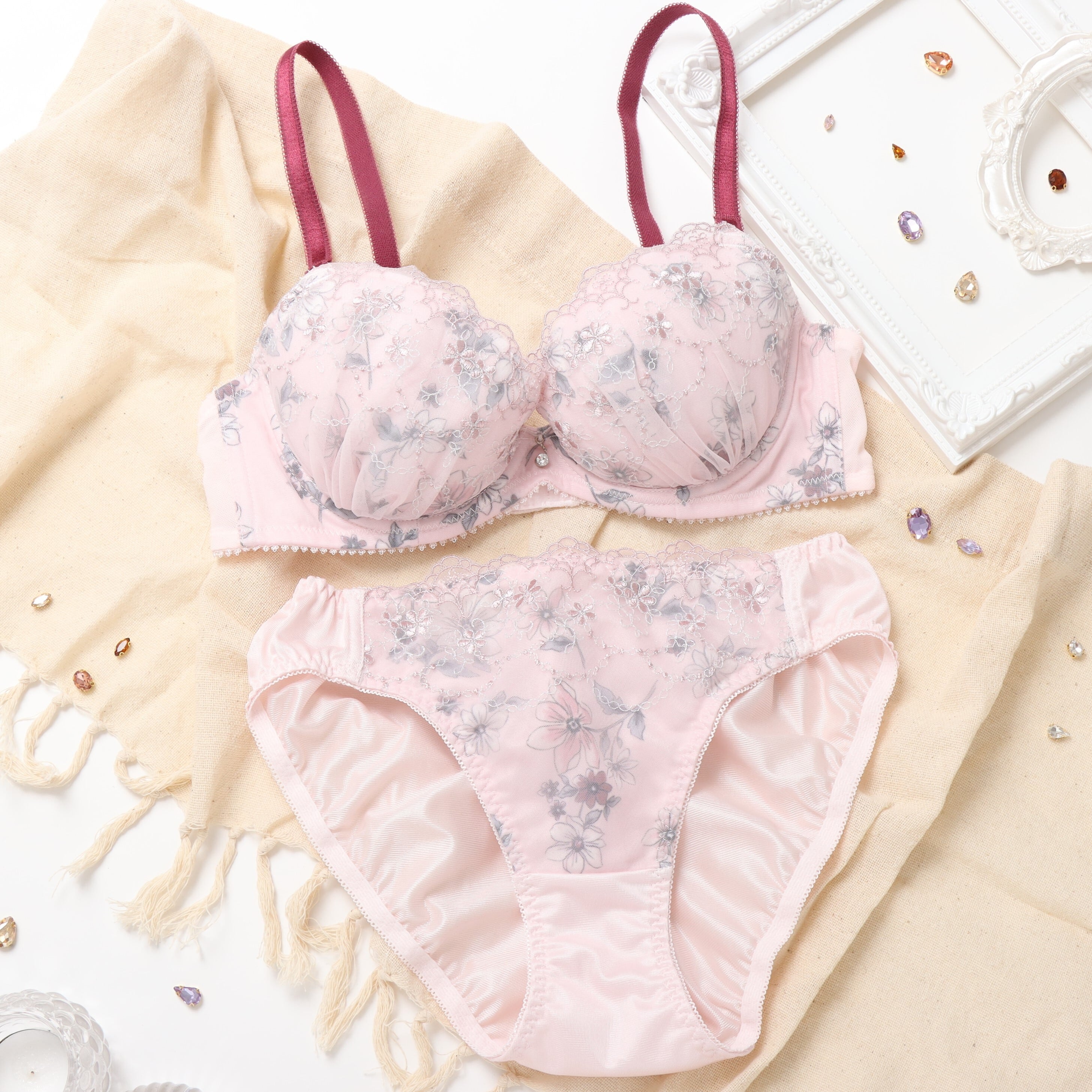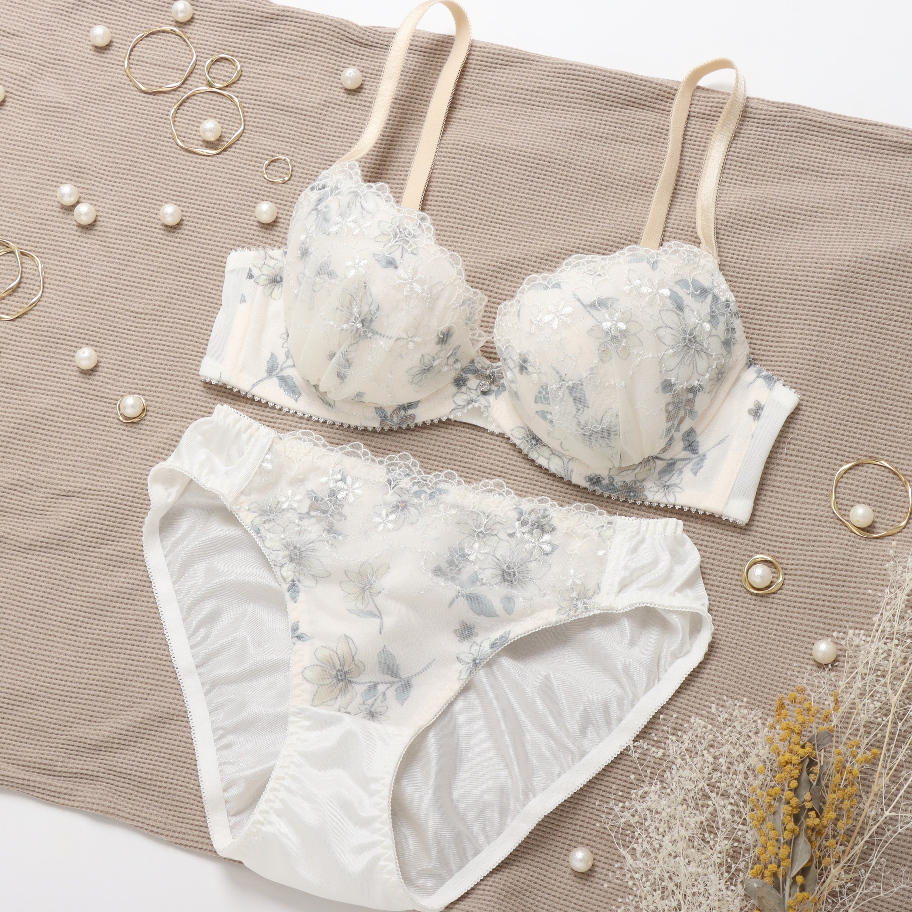 クラシカルな雰囲気の花柄プリントのブラセット。