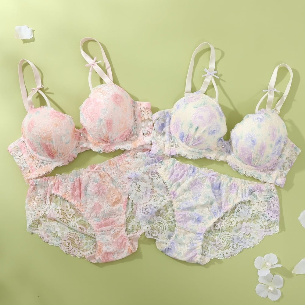 【残りわずか★】フラワープリントコード脇高ブラ&バックレースショーツセット