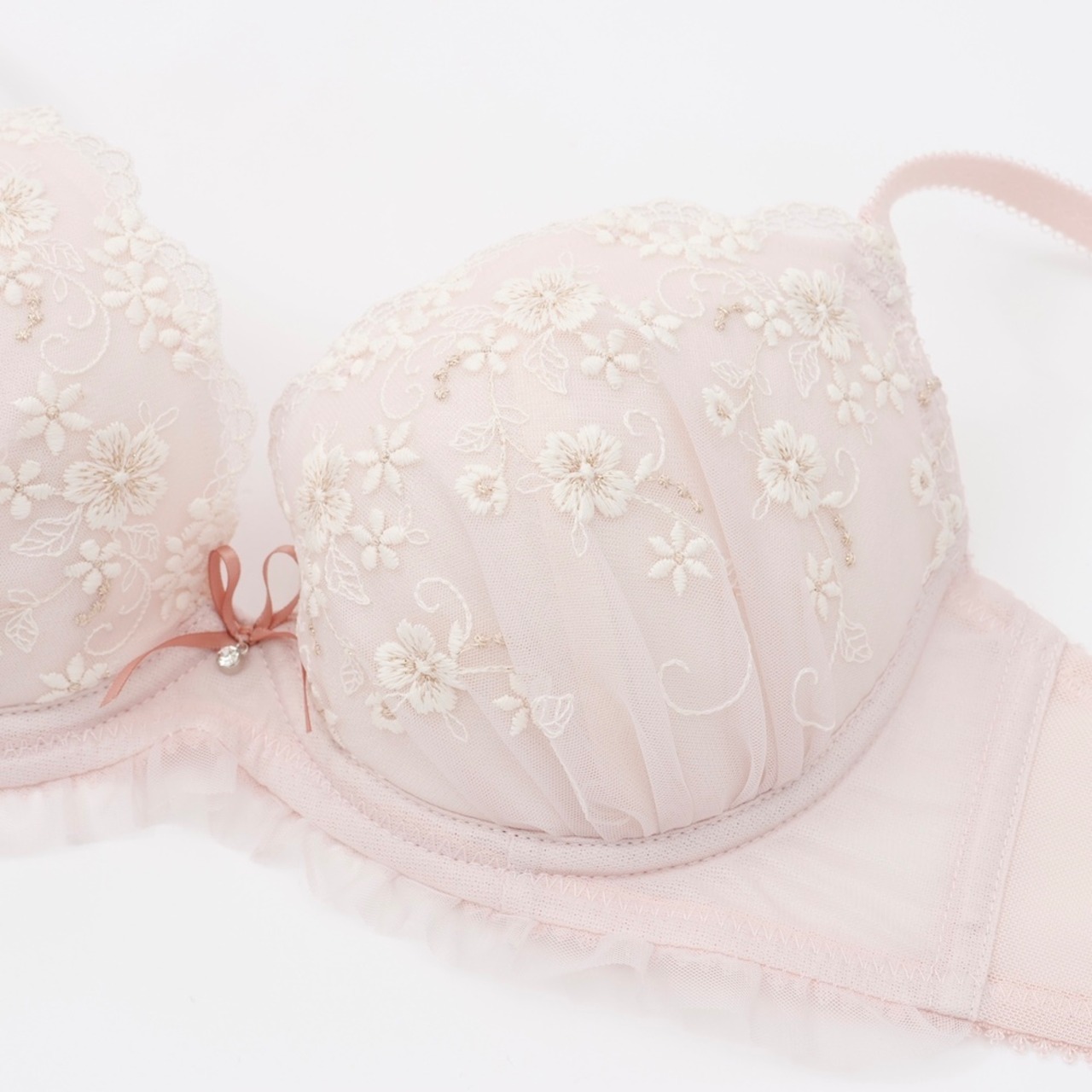 ブラのアンダーに可愛らしいふりふりチュールをあしらい、