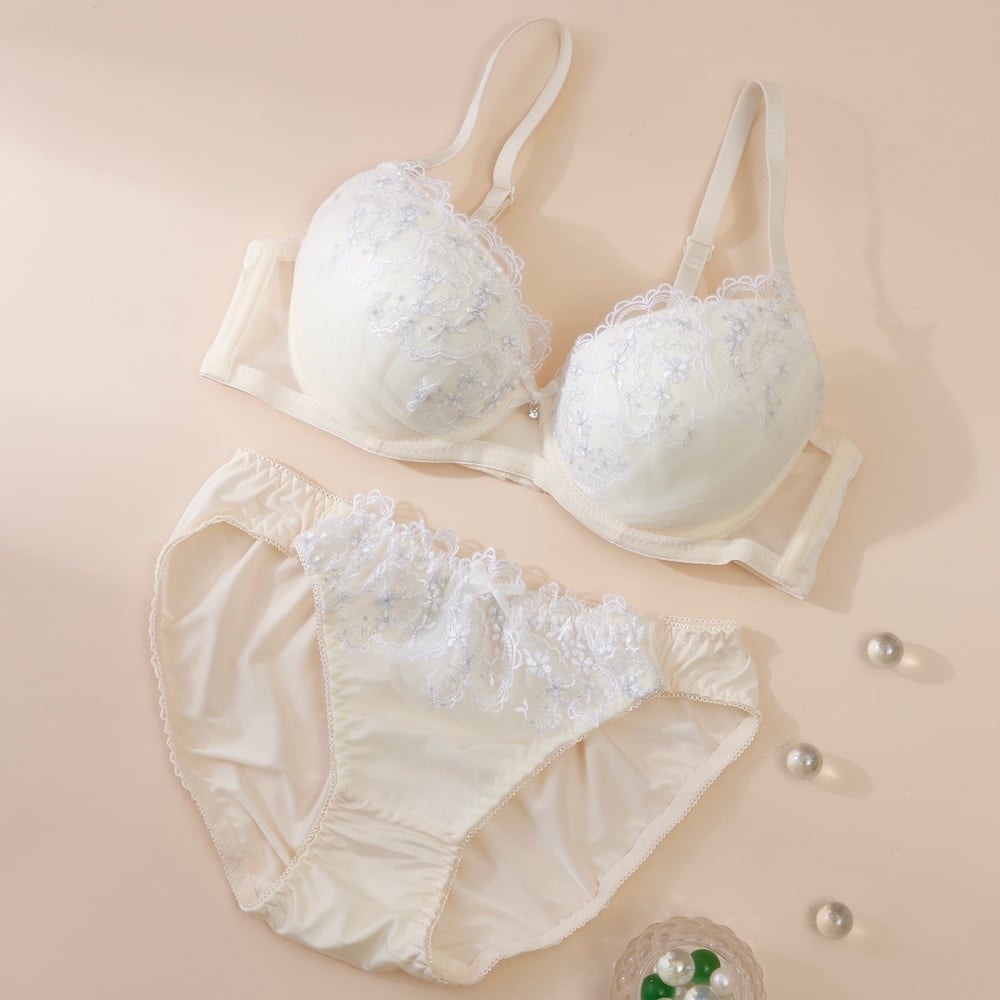ふんわりガーリーな雰囲気のブラジャー&ショーツのセットです。
