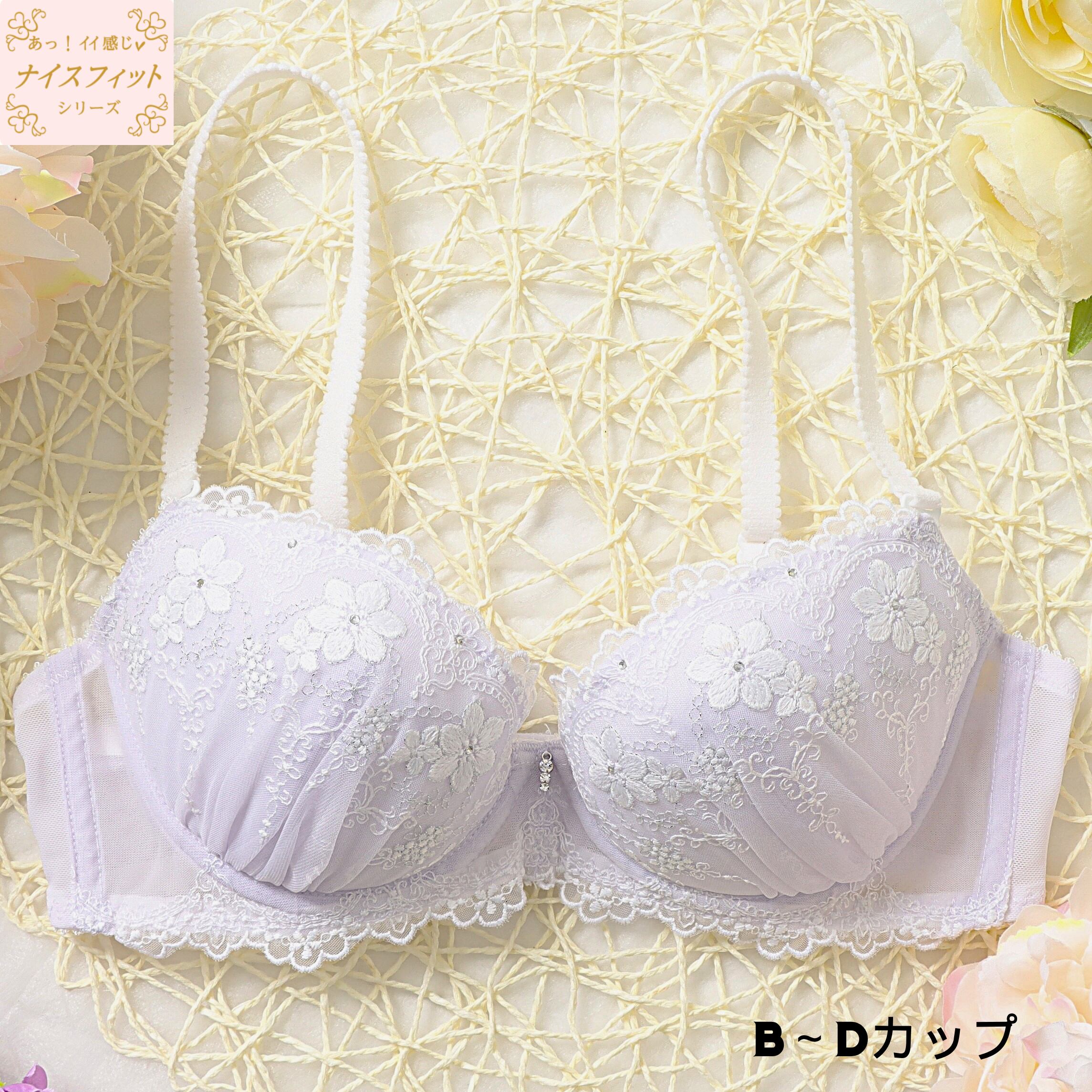 【B~Dカップ/パープル】ナチュラルフラワー プリーツ3/4カップブラ(ブラ単品)
