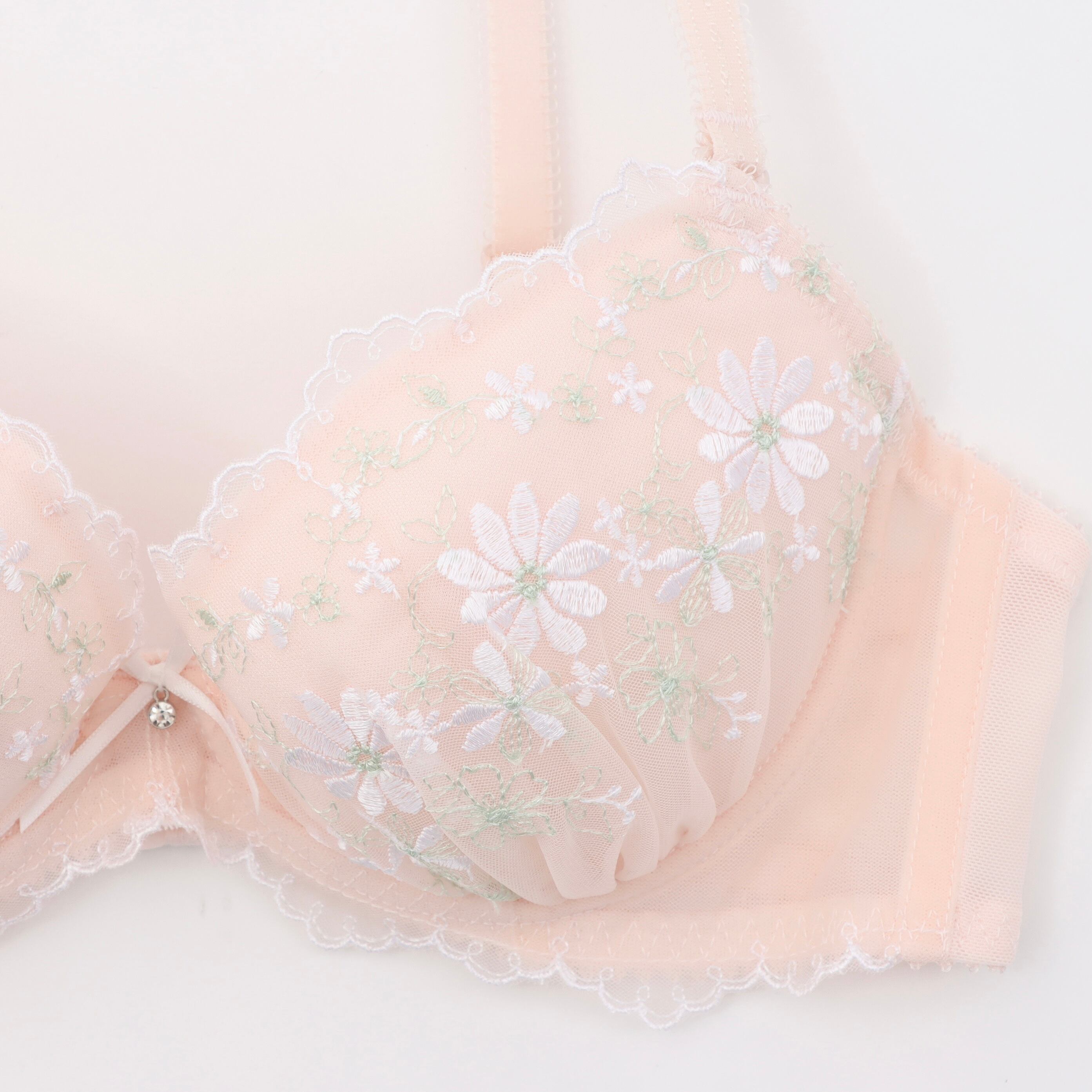 オトナフェミニンな花柄刺繍パステル3/4カップブラ&ショーツセット