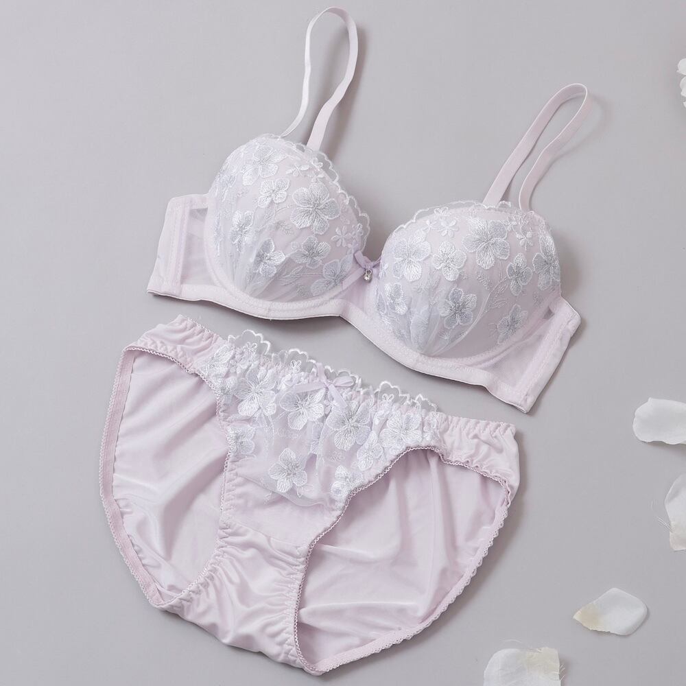 【ラスト2点★ミント×B75】ミルキーフラワー3/4モールドカップブラ&ショーツ