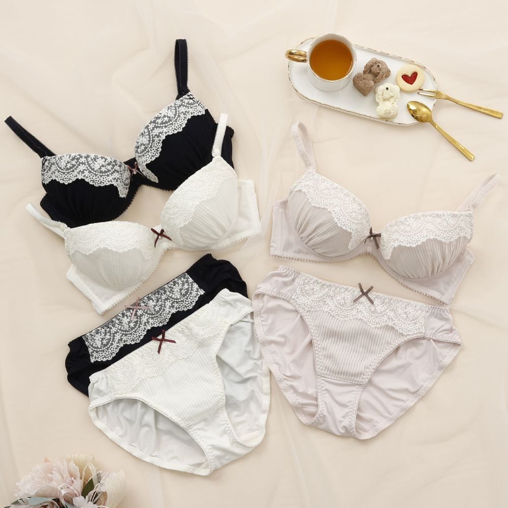 【E・Fカップ】スウィートプリーツ3/4カップブラ&ショーツ