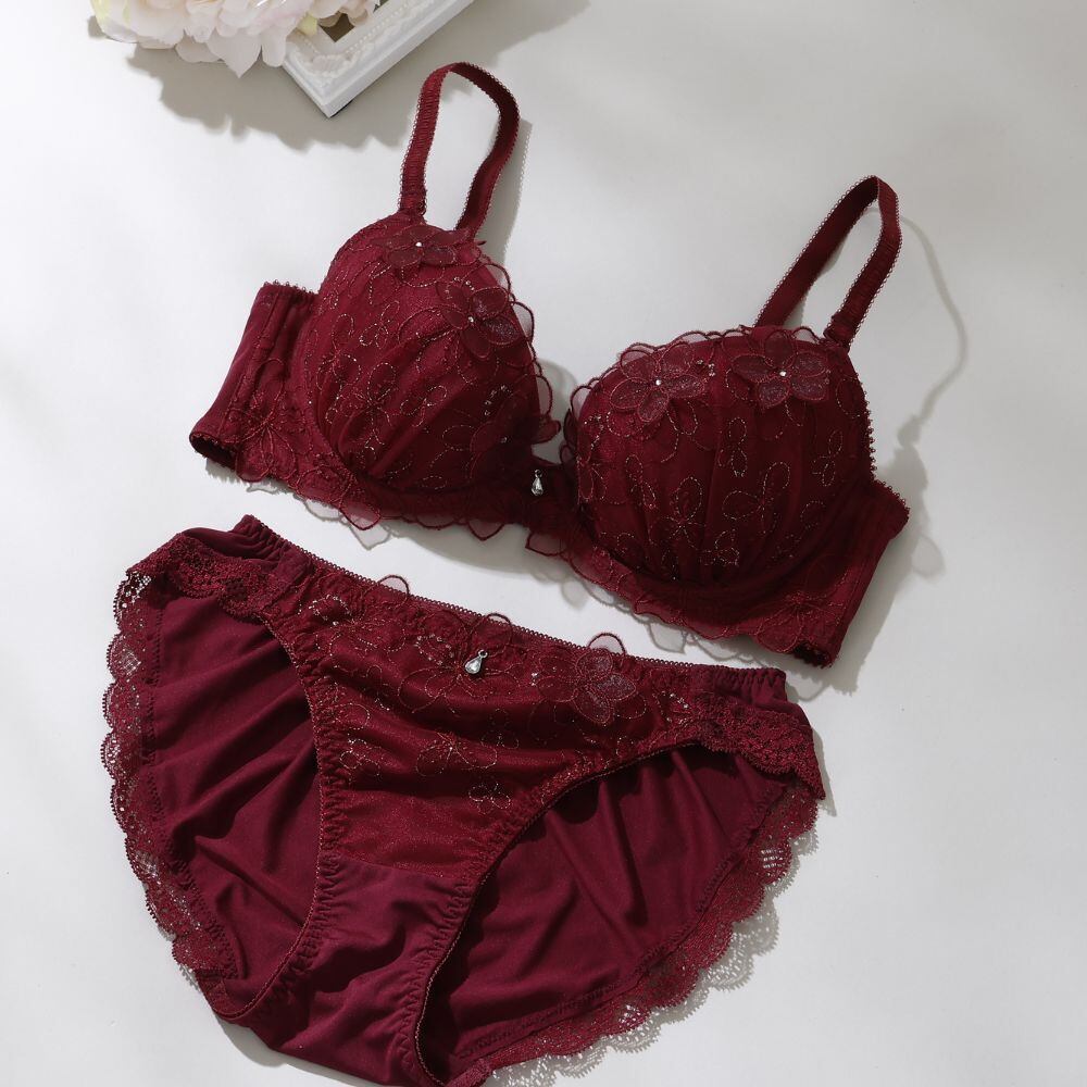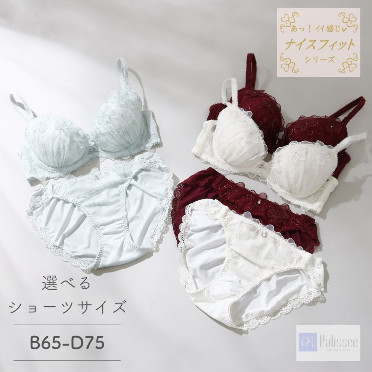 選べるショーツサイズ【B〜D】ブーケアップリケ 3/4カップブラ&ショーツ